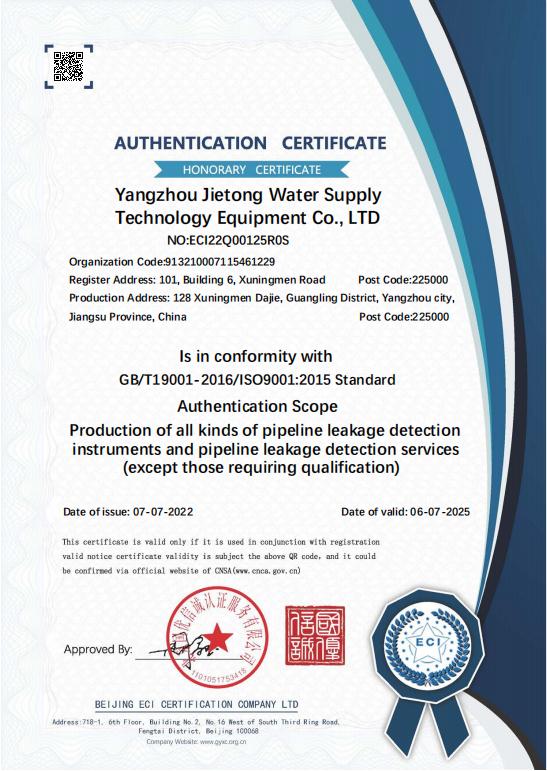 2022年揚州捷通供水技術設備有限公司再一次通過ISO9001質量體系認證審核,每年都要經過一次嚴格的審核。